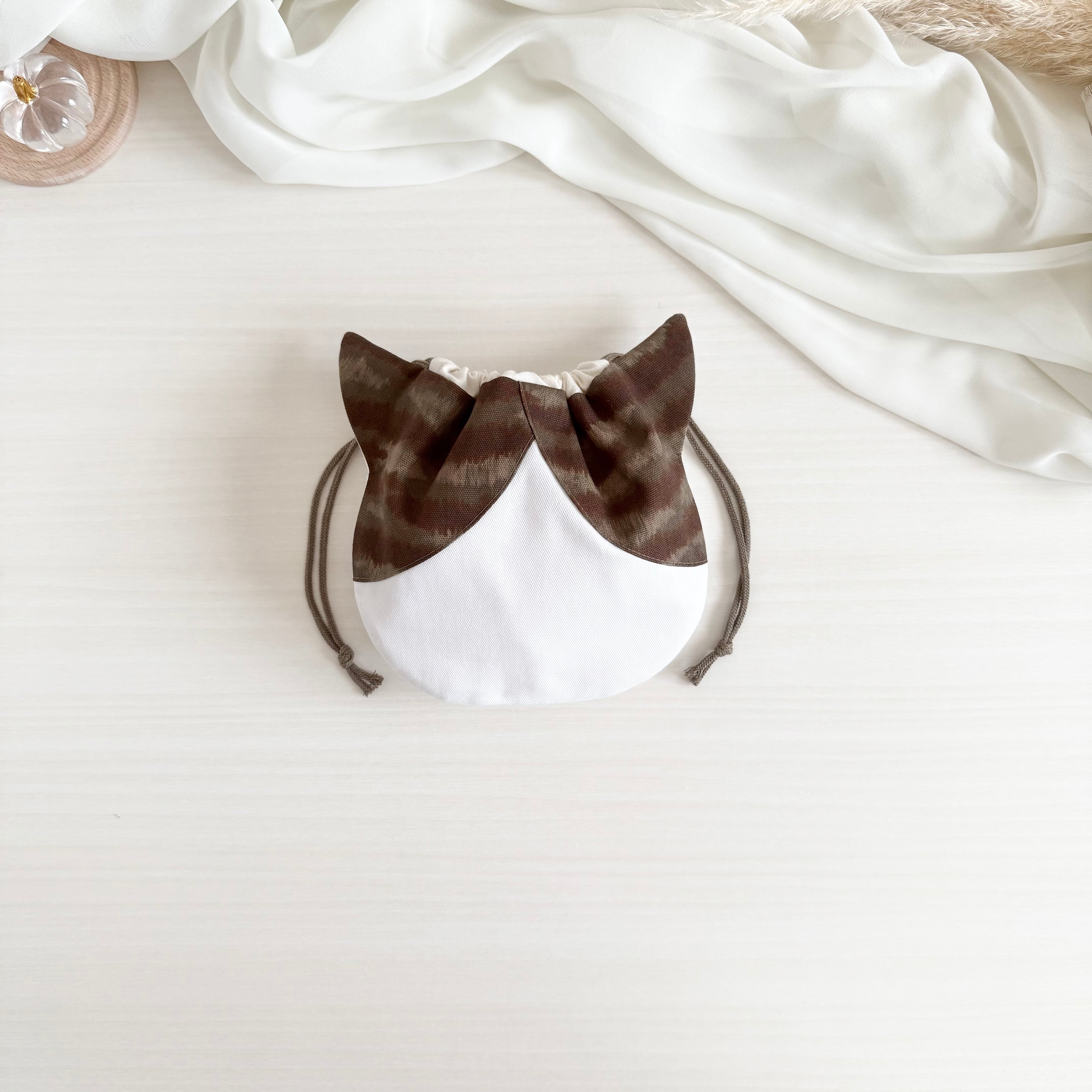 【受注】ネコ耳巾着【L】キジ白